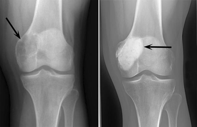 일명 파골세포종(osteoclastoma)라고 하며 골 종양의 5%를 차지하고 있습니다. 주로, 무릎 주변 및 손목주변에서 나타납니다. 95% 이상이 양성종양입니다만 약 3-4%가 악성이며 악성일 경우, 폐전이등을 통해 사망에 이르게 하기도 합니다.