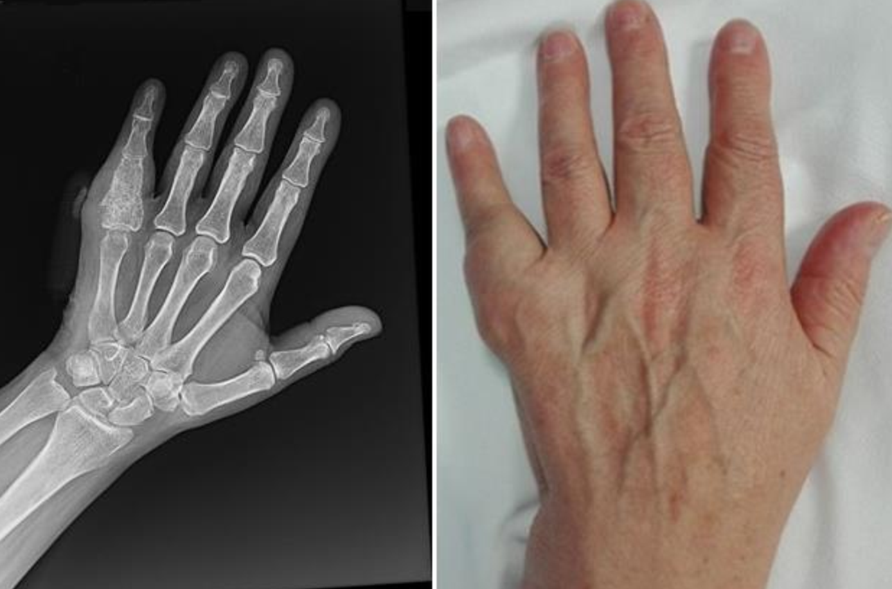 종양이 발생한 환부에 가벼운 통증이 있을 수 있으며 손과 발의 경우 질병으로 인한 병적 골절도 흔히 발생합니다. 만약 손발이 아닌 장관골(long bone)에 발생한 내연골종에서 골절이 없이 통증이 나타났나면 악성변화를 의심해보아야 합니다.