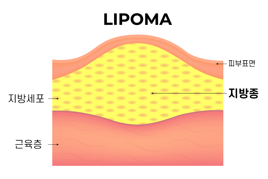 지방종은 성숙된 지방세포로 구성된 양성종양으로 얇은 피막으로 둘러싸여 있습니다. 우리 몸 어느 부위에서나 발생할 수 있지만 보통 몸통, 허벅지, 팔 등과 같이 정상적인 지방 조직이 있는 피부 아래 조직에 가장 많이 발생합니다. 연부조직에 생기는 양성 종양 중에서 가장 흔한 종양으로 주로 40대에서 60대 사이 성인에게 발생하나 어린이에게도 발생할 수 있습니다.